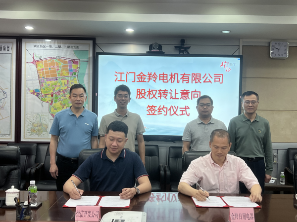 签约仪式在庄重而热烈的氛围中举行。双方就合作细节进行了深入交流,在充分沟通、达成高度共识后,江门金羚日用董事长梁少飞与恒信开发公司总经理李源杰郑重签署了意向书,双方达成江门金羚电机股权转让意向。